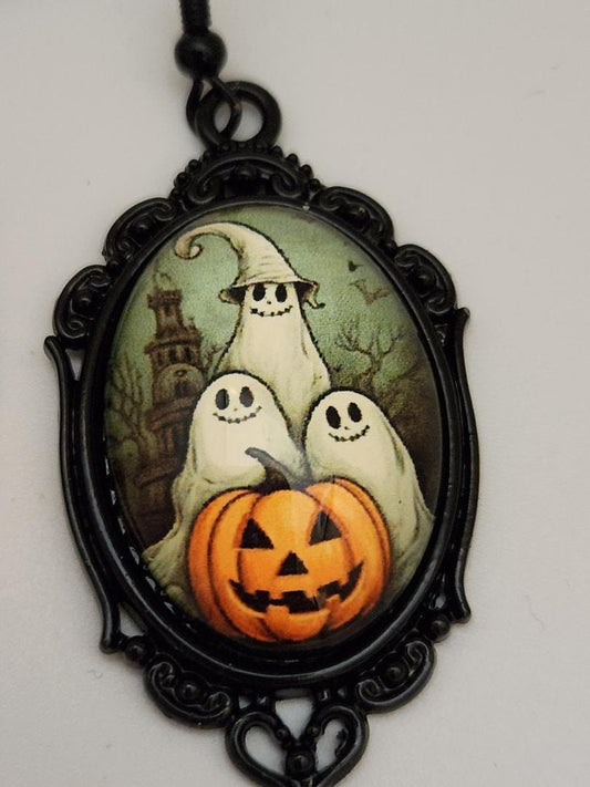 Ghost Pumpkin Halloween Earrings – Spooky Gothic Jewelry | Haunted House Earrings | Fun Statement Earrings for Halloween & Fall Fashion