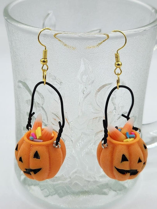 Pumpkin Candy Earrings – Halloween Bucket Jewelry | Fun Jack-o’-Lantern Statement Earrings for Spooky Season